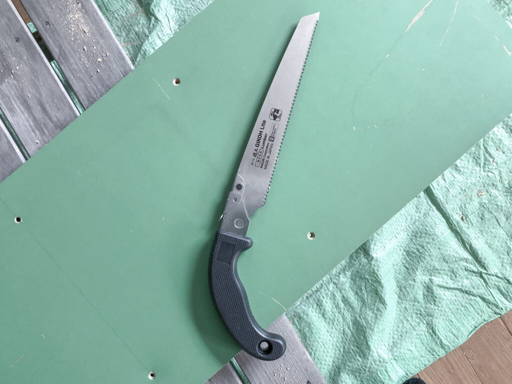 ノコギリは、角利産業の角利スーパー技工 替刃式のこぎり 一般木材用を使いました。