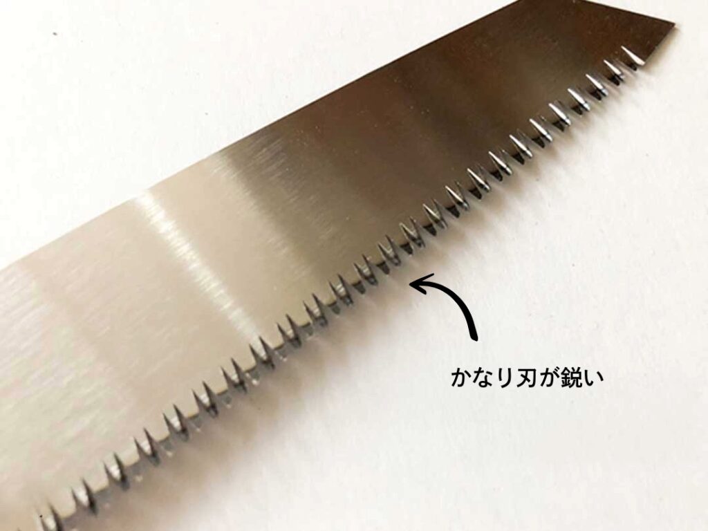 両面には鋭い刃が交互についていて、ちょっと触っただけで手が引っ掛かり、気をつけないと触れただけで手が切れてしまいます。
